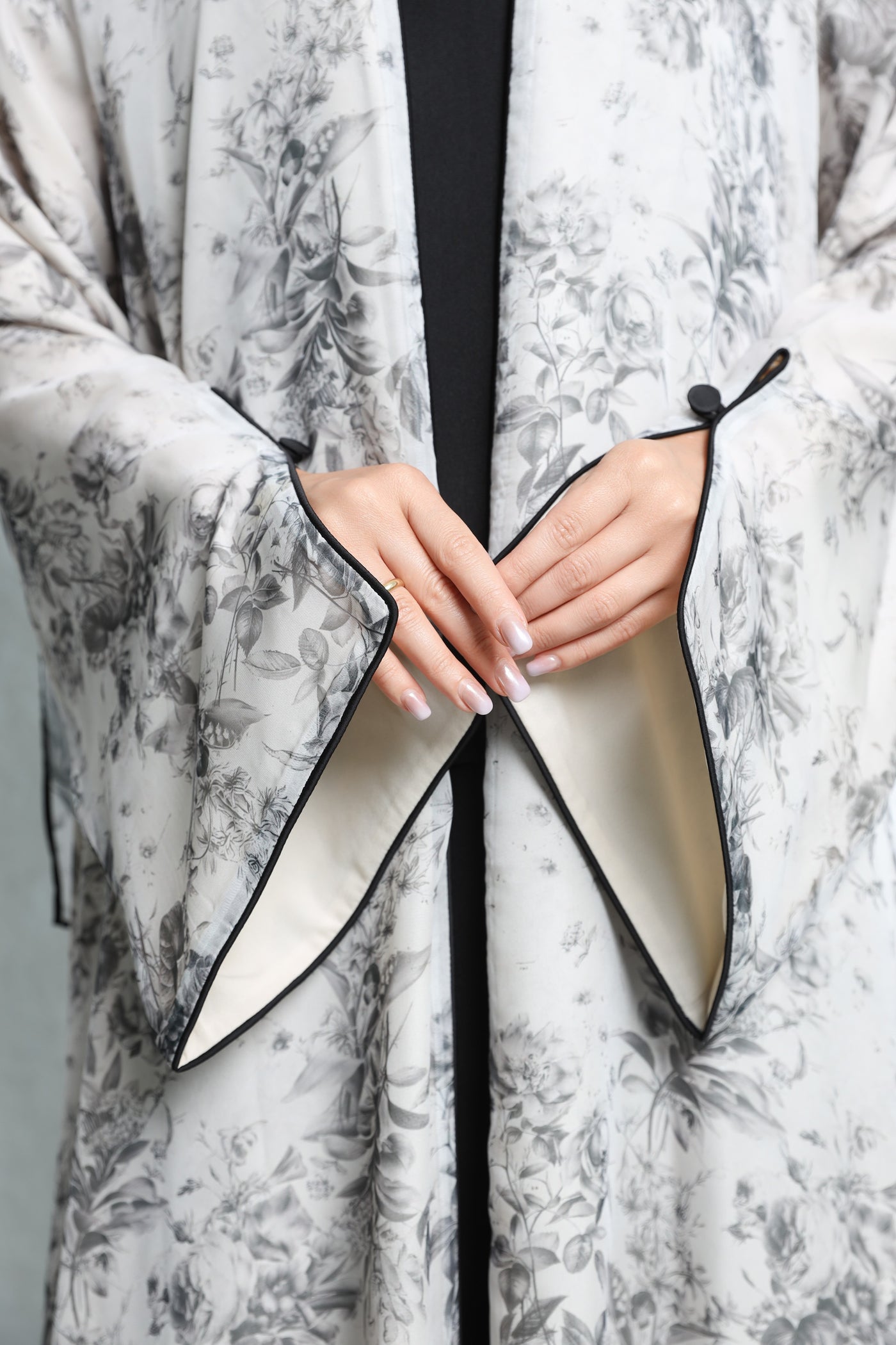 Floral Georgette Chiffon Abaya – Soft Grey Garden Print